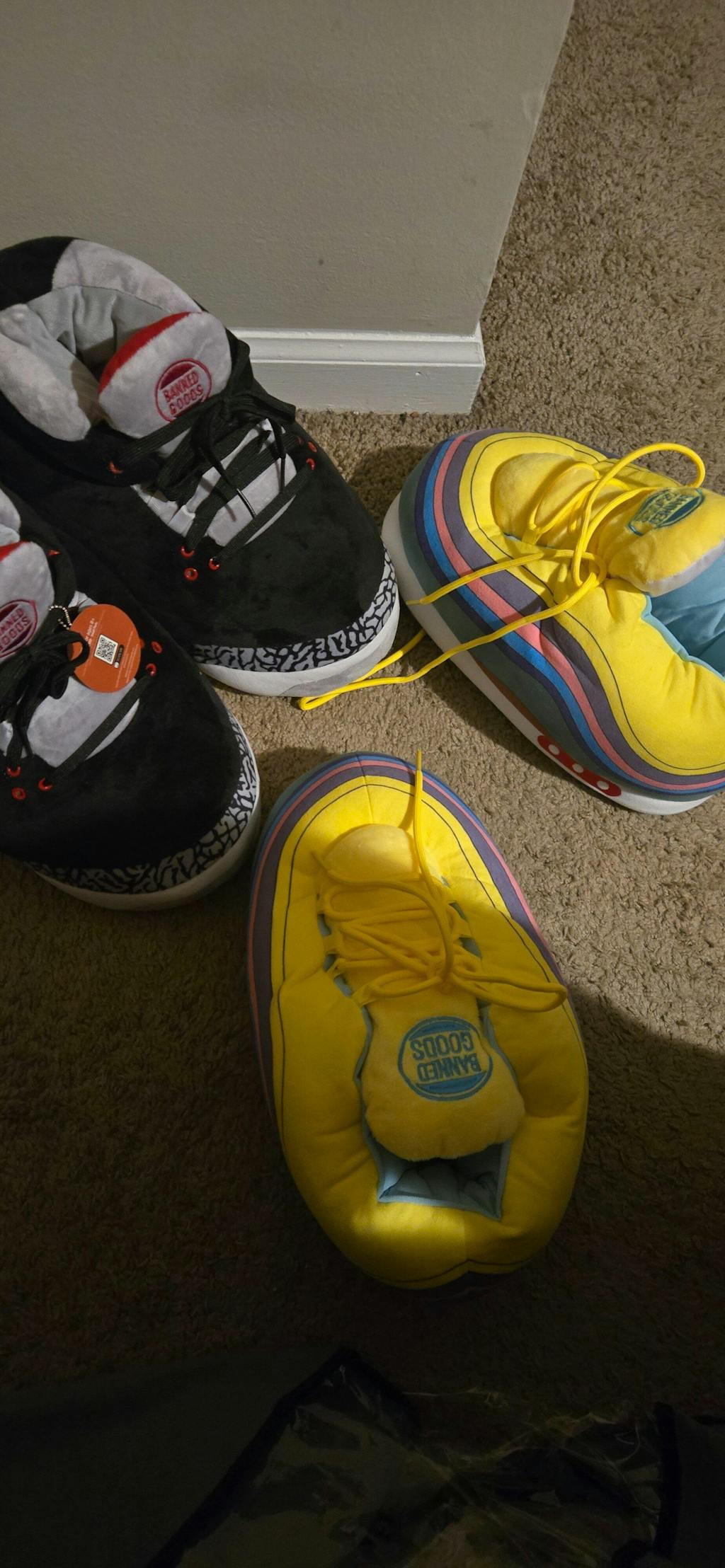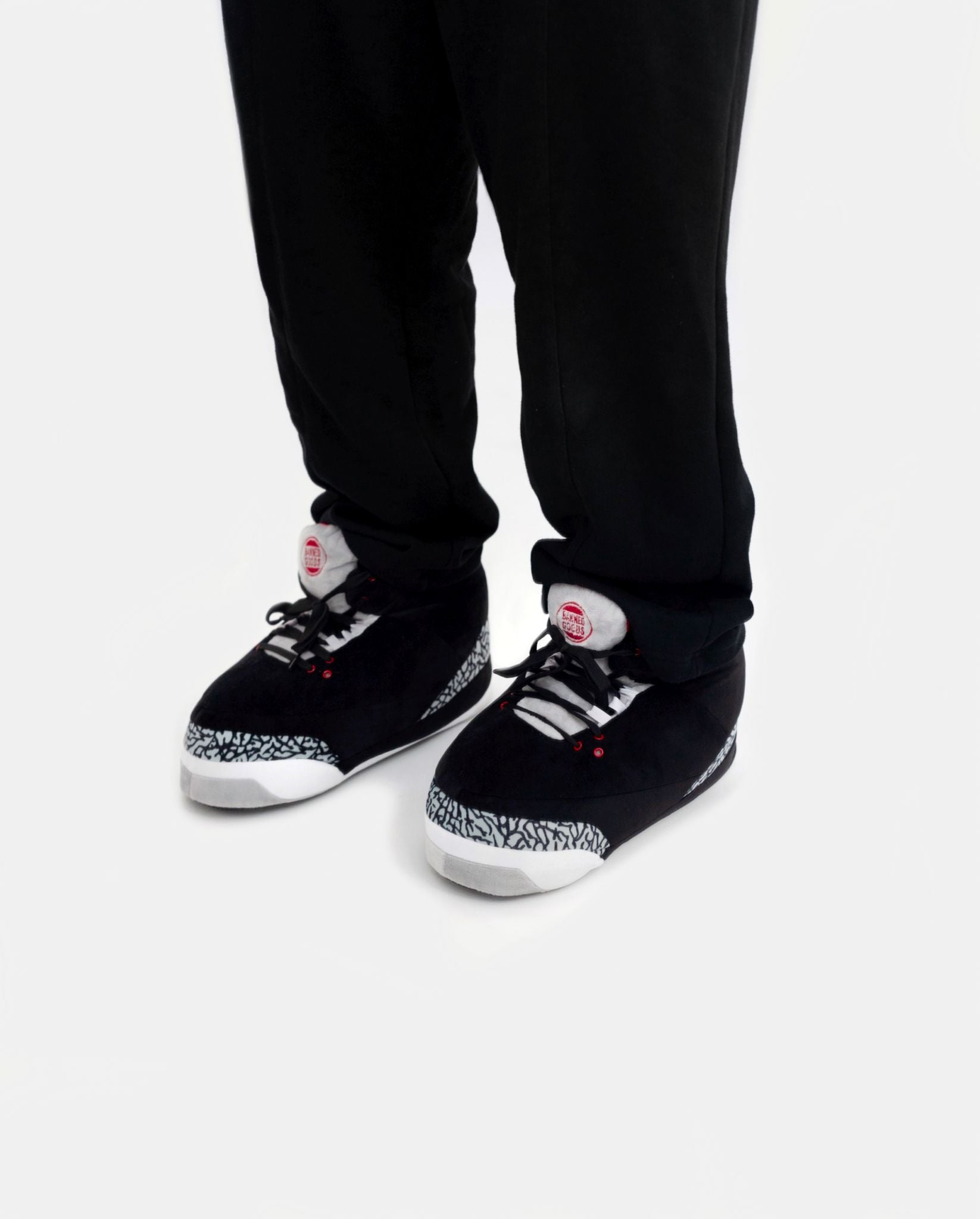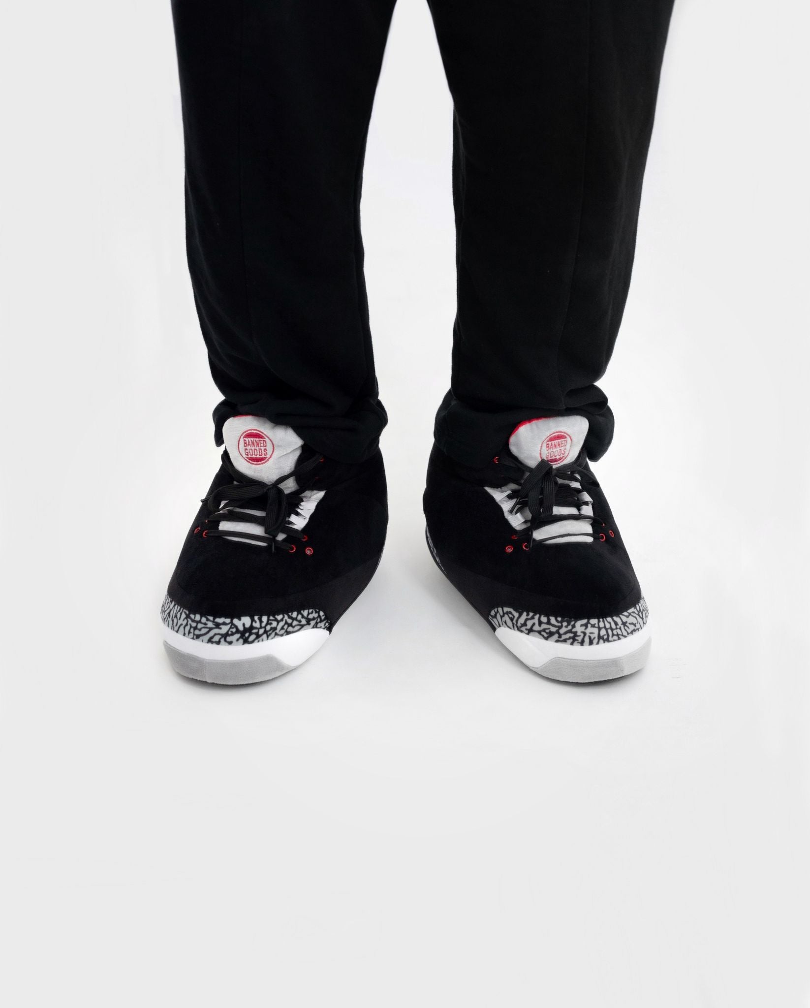 All Banned Goods black sneaker slippers are one size fits most (US sizes 4-13), making them the perfect gift for sneakerheads of all ages. Get yours today to build your sneaker collection.