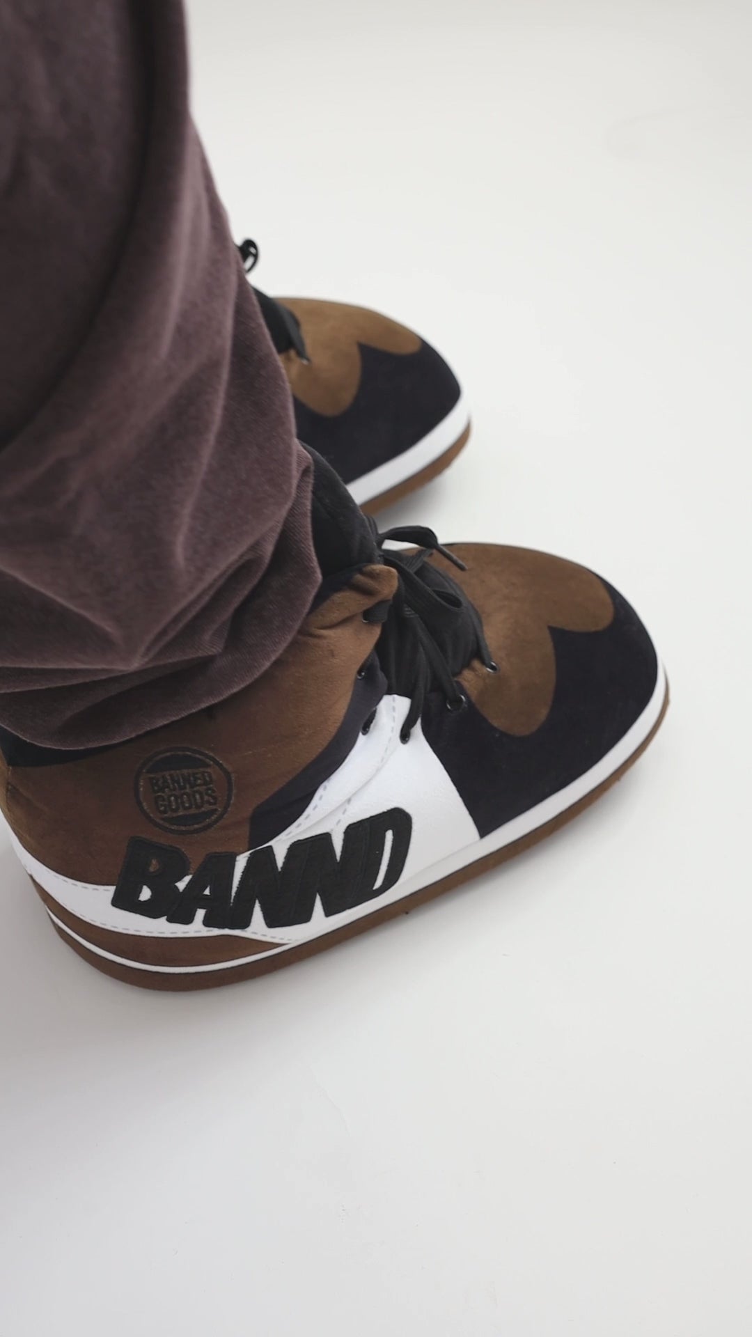 Take your shoe collection to the next level with the OG Brown house shoes from Banned Goods. Slip them on after a long day at work or wear them during a lazy weekend morning. The plush & foam gently cradles your feet, keeping them cozy and relaxed. Whether you're lounging on the couch watching Netflix or making a cup of coffee to start your morning, these slippers will provide the comfort and relaxation you need.