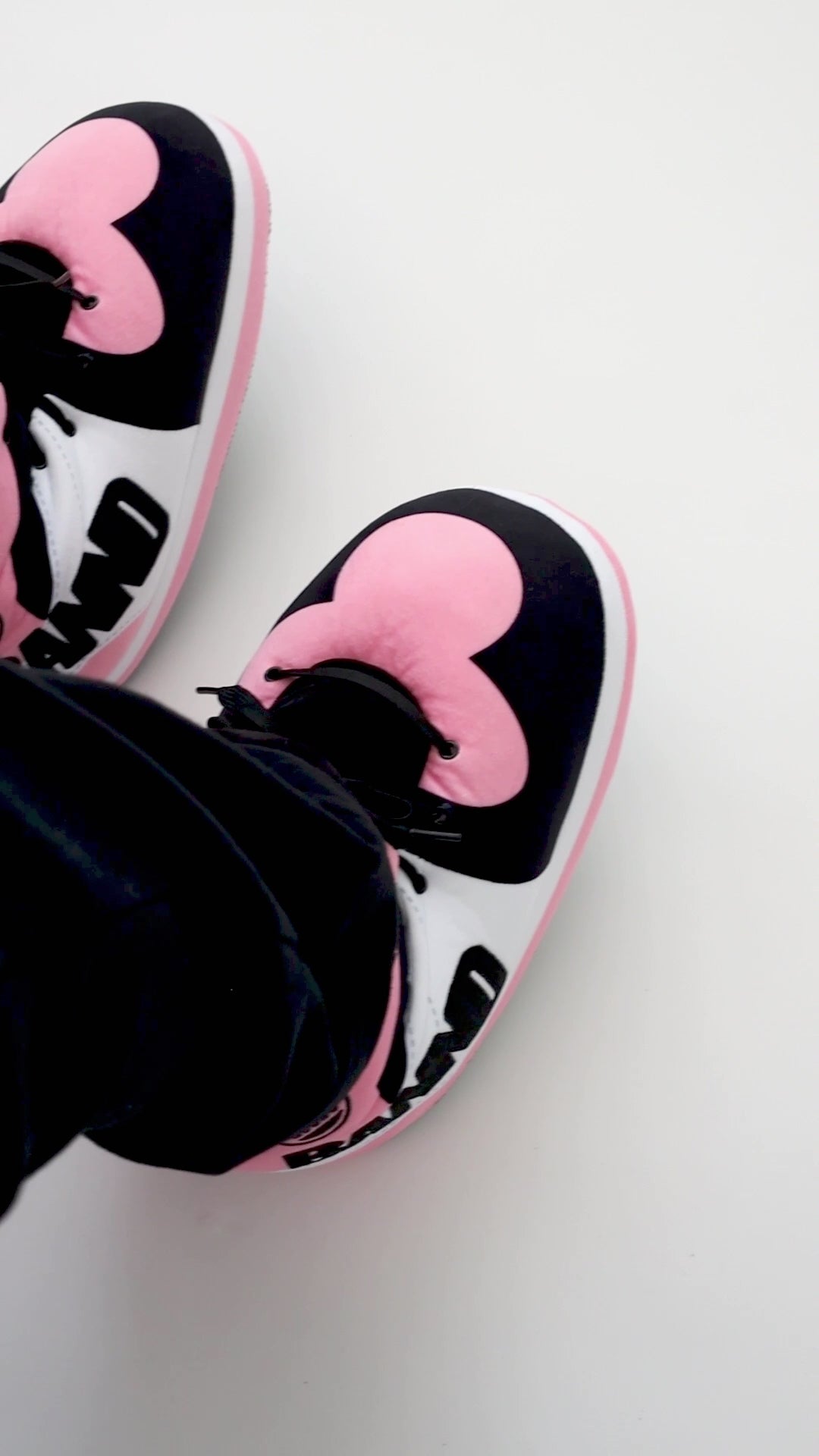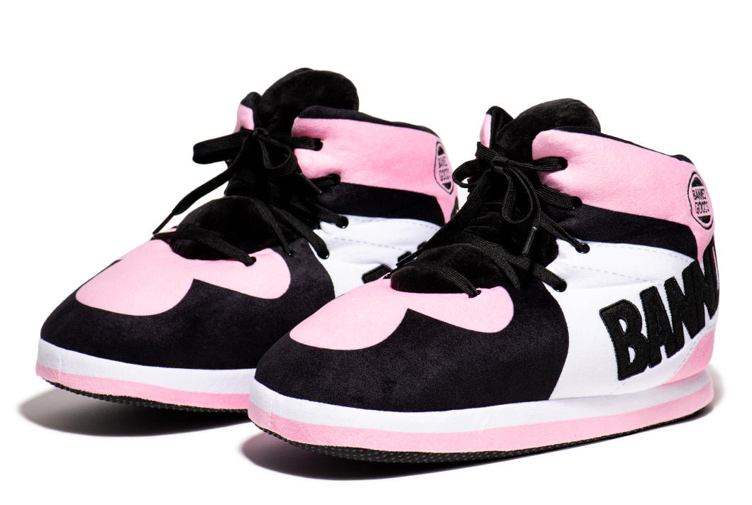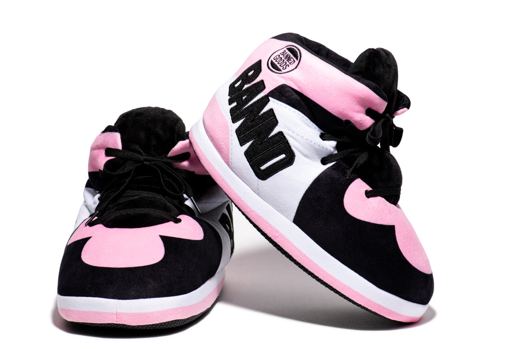 Sit pretty in pink with the OG Pink sneaker slipper. These popular pink, black and white high-top sneaker slippers will keep you looking fly even when you’re kicked back and relaxed!