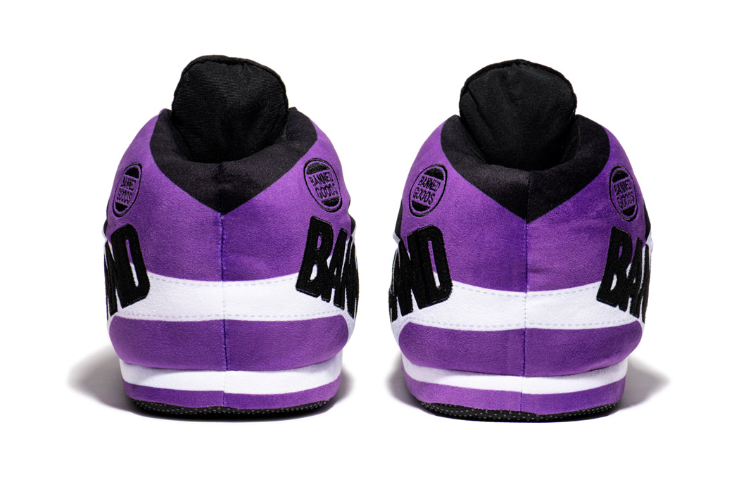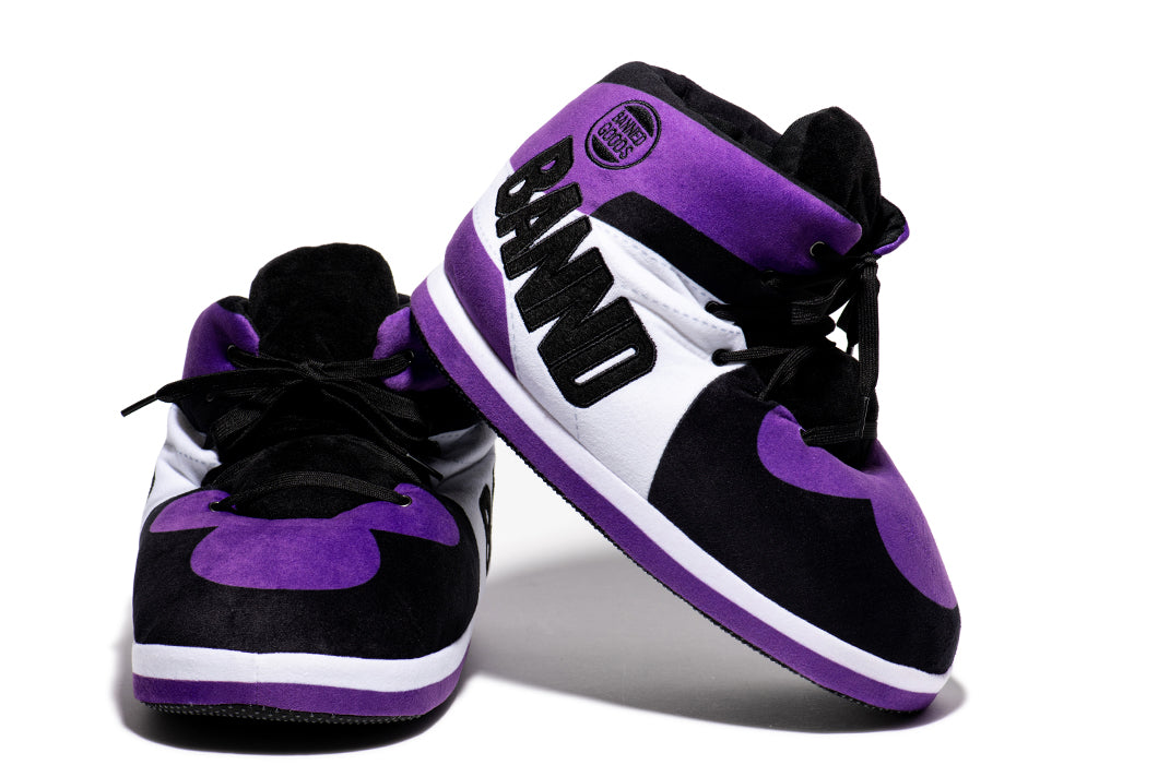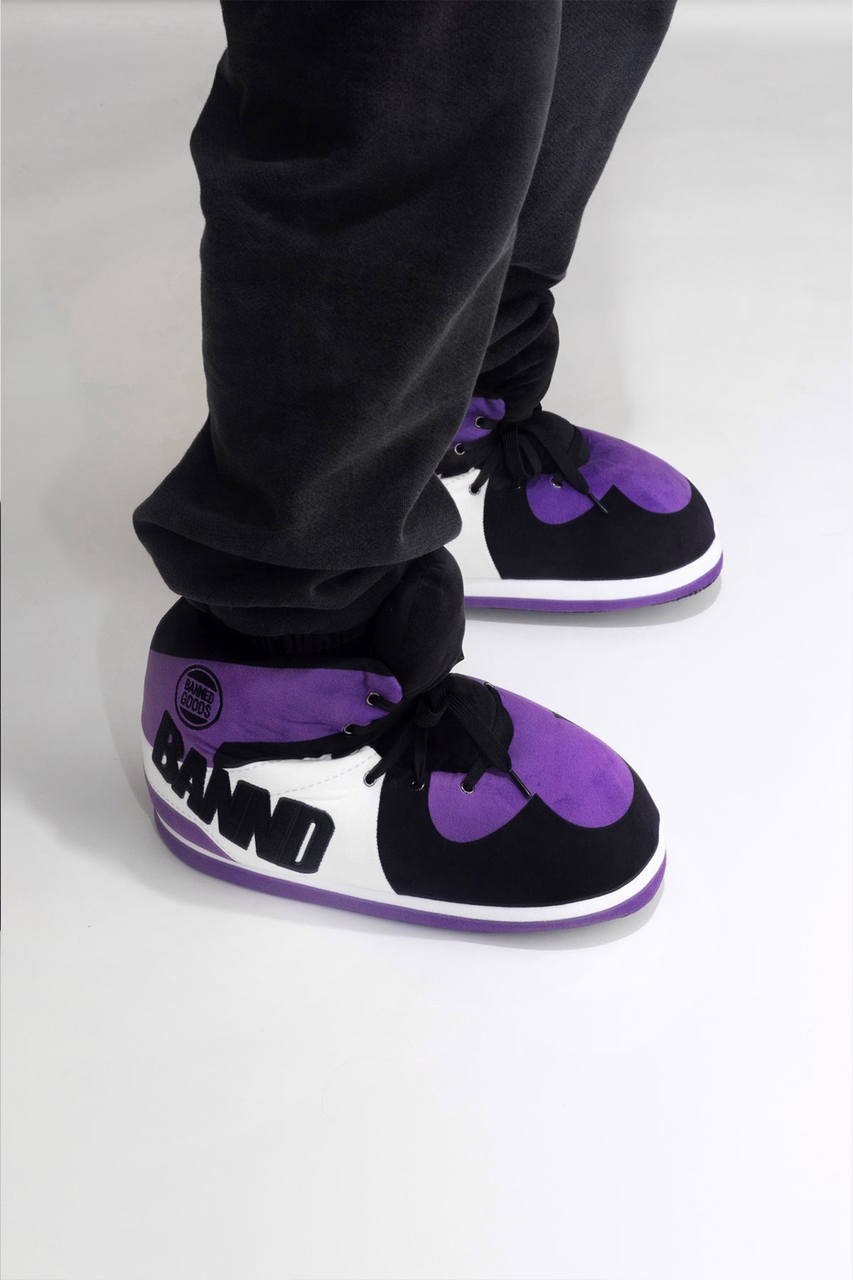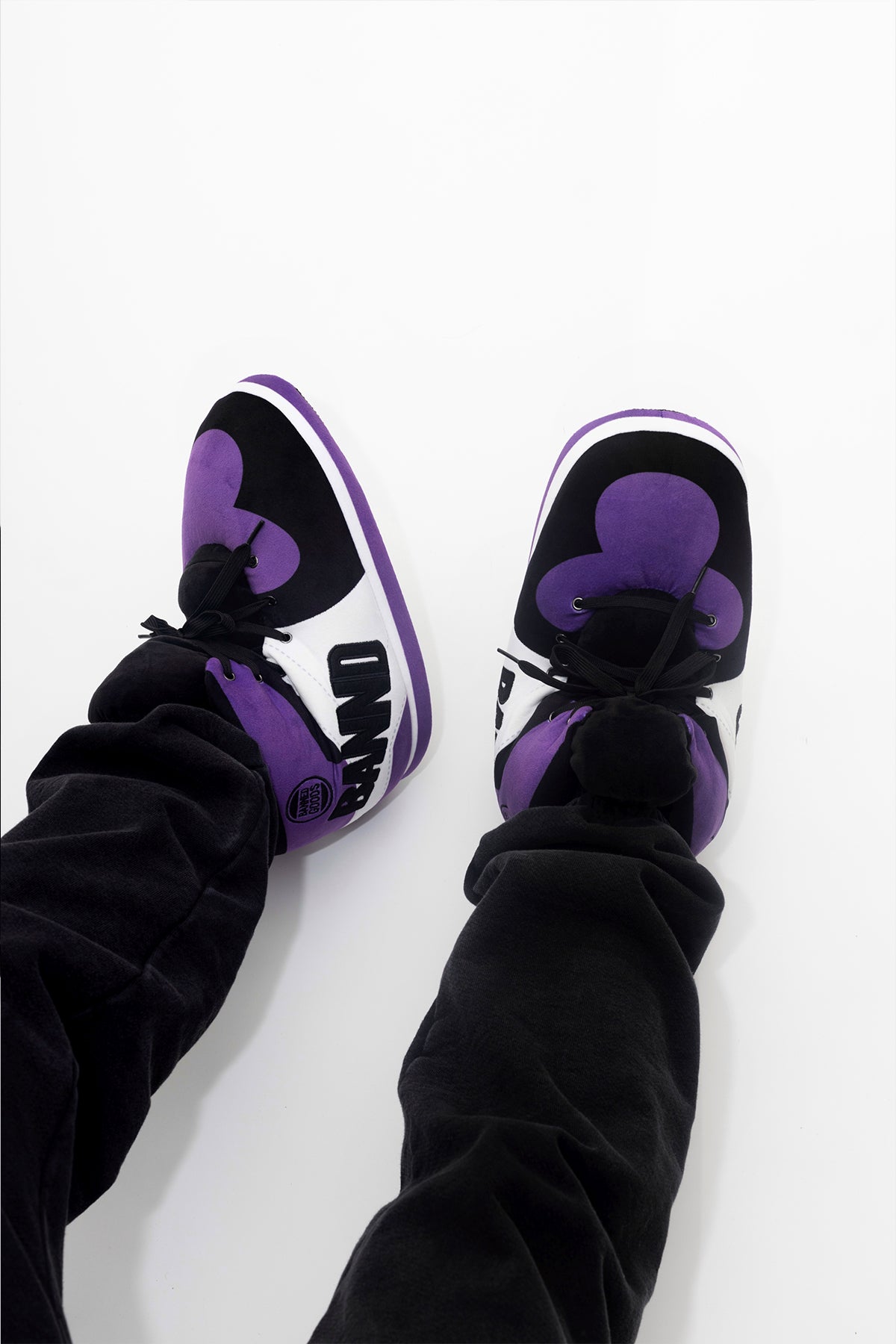 These retro slipper shoes in purple, black and white look great on anyone's feet!